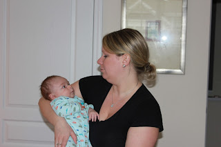 After bath time (still his favorite) he goes down around 8 pm and doesn't usually wake up until 2-3 am and then goes right back down until 6 - 8 am. God love this kid! When he wakes up for his middle of the night feeding, he doesn't cry. He lets out a few yelps and we all sware it sounds just like he is saying "hey". It is hysterical and I'm going to try to get it on video so that I can always remember it. Im hoping in the next few weeks he will skip the middle of the night feeding and sleep 10-12 hours straight. But even if he doesn't I am not complaining about his sleeping habits one bit!